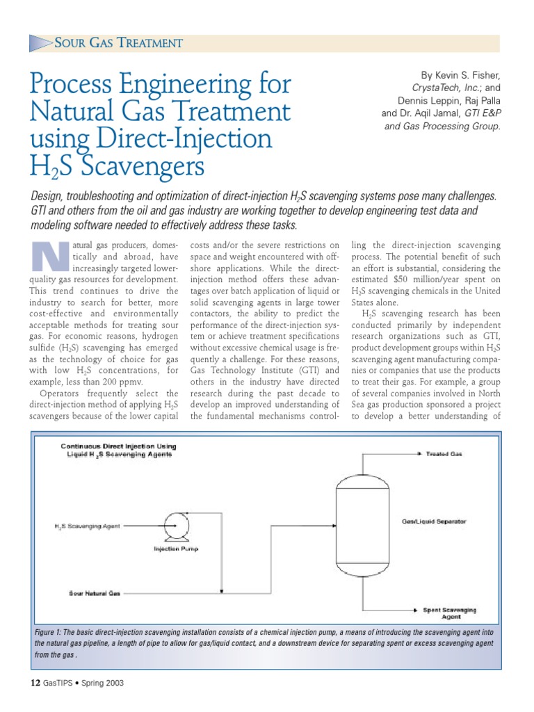 These issues have prompted the development of new h2s scavenger chemistries, generating a need for guidance on their application and performance. One of the most serious problems of oil and gas producing and refining companies is the contamination of products with hydrogen sulfide and light mercaptans. Low emission of this gas can however cause damage but, extensive exposure can claim lives. Piping tees, quills, or atomization nozzles are used to • reaction stoichiometry and kinetics between h2s, co2, and the scavenging agent; Meet contract sales limit for h2s content;